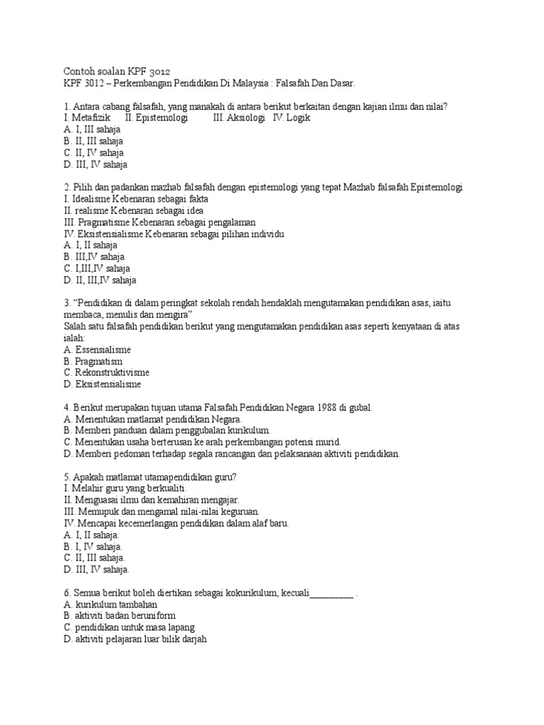 Contoh Soalan Kpf 3012 Docx Contoh Soalan Kpf 3012 Kpf 3012 Perkembangan Pendidikan Di Malaysia Falsafah Dan Dasar 1 Antara Cabang Falsafah Yang Course Hero